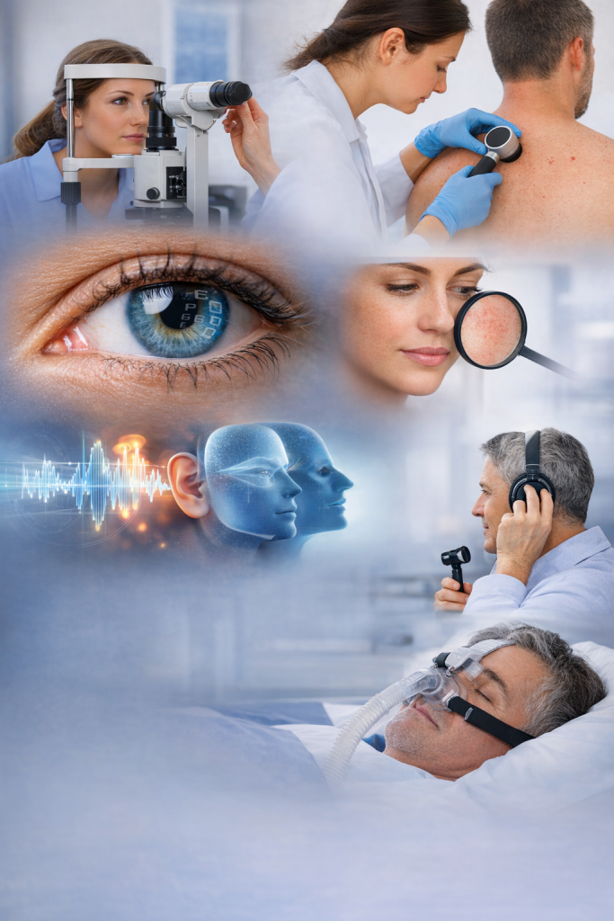 – Audiologie, incluant le dépistage auditif ainsi que le diagnostic et le suivi de l’apnée du sommeil